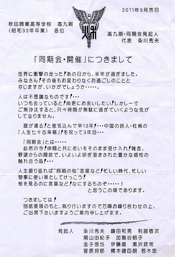 ■「高9期(昭和33年3月3日卒業)同期会」開催のご案内