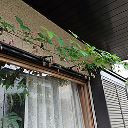 添付写真は日除けに植た半鐘蔓です・・・可憐な花が半鐘の形をしているからついた名前です。