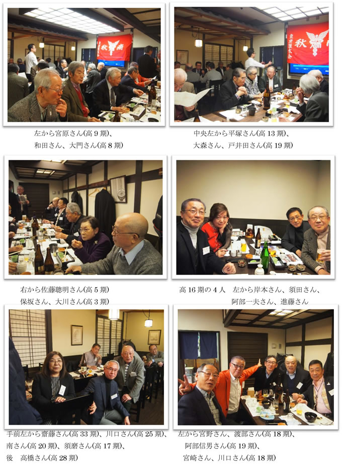 東京雄水会の新年会が、2016年1月23日(土)12時から東京日比谷の佐藤養助日比谷店で、昨年より8名多い会員31名が集い開催された。