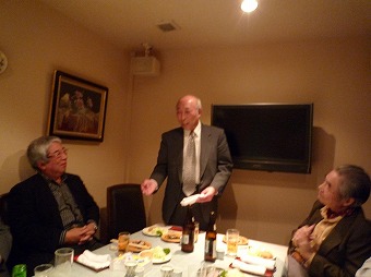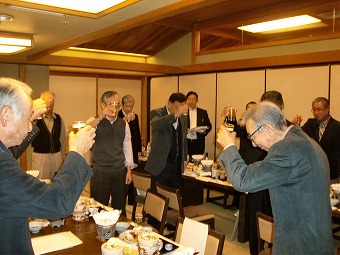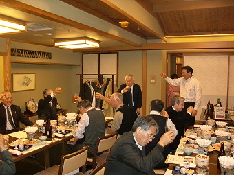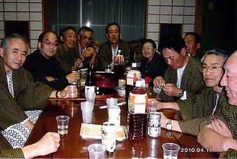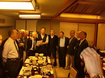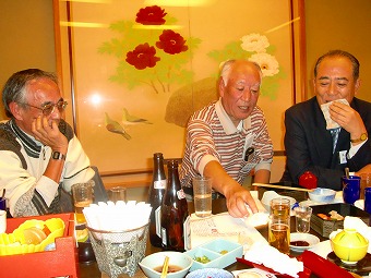 この会場で3時間もいただろうか。普段はこれで散会となるのだが、この晩は、皆さん何か別れがたかったね。駅前の飲み屋で二次会をしよう、ということになり、ほとんどの人間が参加した。ここでも、一升瓶一本が空いた。