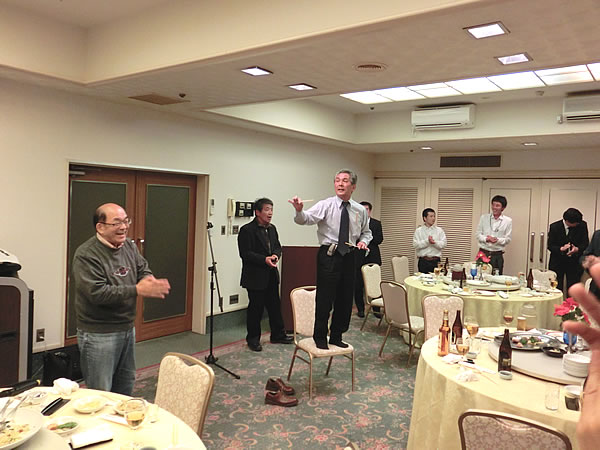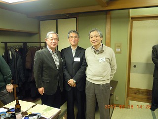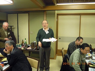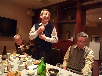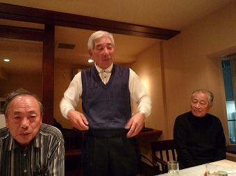 それぞれが3分間スピーチで、最近の心境を語り合った。豪の者もいて、10分以上もダラダラ話していた奴もいたのだが…。阿部一夫君は、法政大学駅伝部のコーチをやっているのだが、タッチの差で今年の箱根駅伝の出場権を逃したのには、皆さん同情した。ぜひ、来年こそ出場してもらいたいものだ。そういえば、遠藤武二君も、最近はマラソンに挑戦しているとか。3月の「京都マラソン出場」が決まったと言っていた。