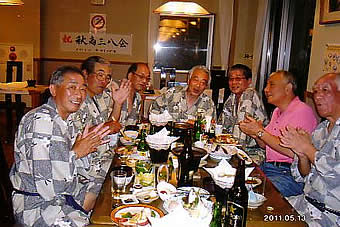 こうやって集まれるのも、皆さん健康だからである。しかも“われら秋田シュ”だ、自分をさておいて言うのも何だが、よく飲むね。お銚子40~50本も並べたのではなかったのだろうか。紅一点の須田ちゃんまで酔っぱらったのか、「仕事が欲しい!男が欲しいよ!」と叫んでいたが、そんな話しにはだれも見向きもしない。