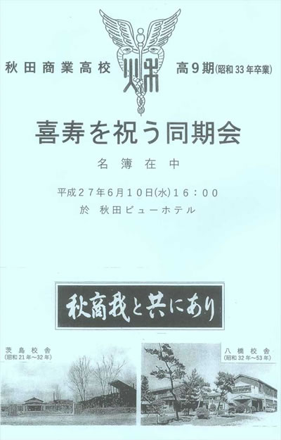 2015年11月28日(土)秋田ビューホテルに、卒業50年を記念し昭和41年卒・高17期3年F組の同級会を開催いたしました。